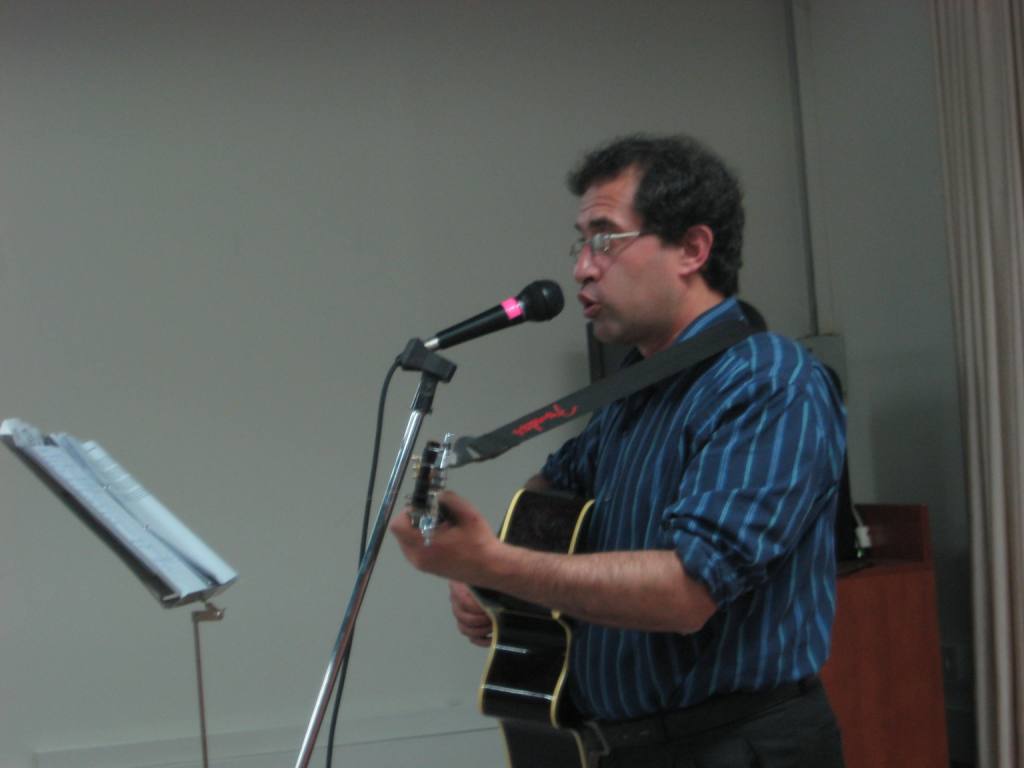 На сцену поднялся человек с гитарой. Подошел к микрофону - и, ударив по струнам, сходу запел "Братские могилы" Высоцкого, на русском, потом на иврите. Наполненный болью голос разрезал пространство зала.
